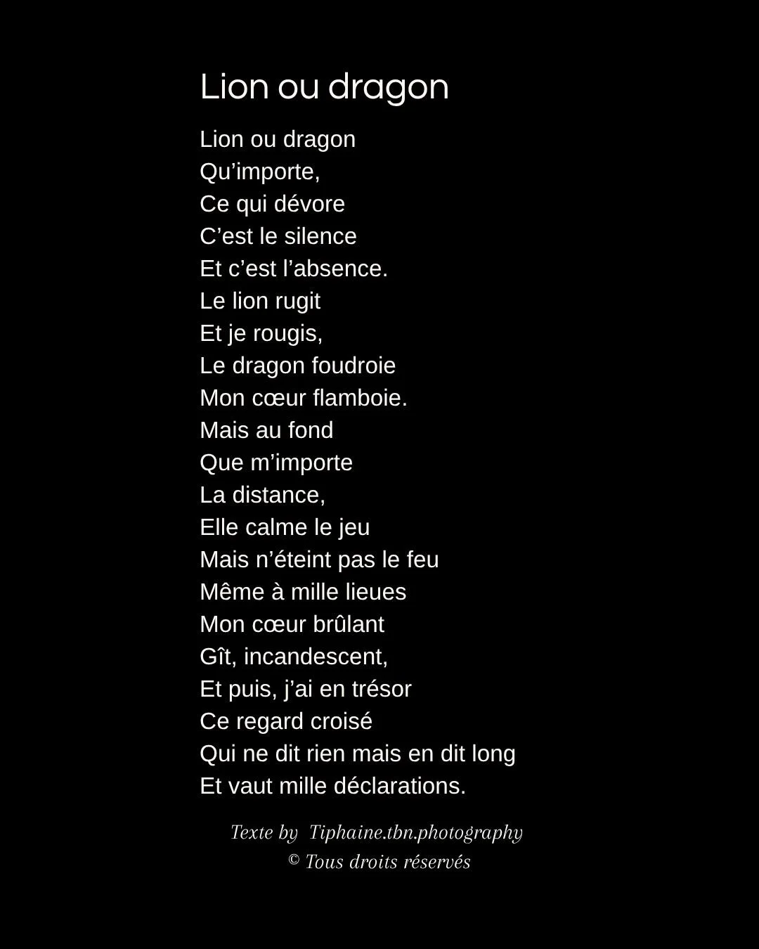 "Lion ou dragon" - Texte et Image ©Tiphaine.tbn.photography